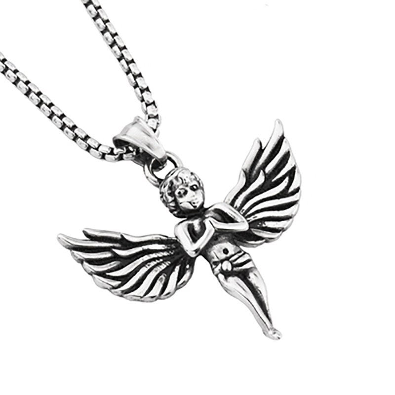 Funky Punk Stainless Seel Cool Dark Angel Silver Necklace -- Save me!!